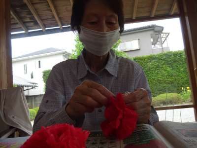 そして、大きな吹流しは、ペーパーのお花を作っていきますチューリップ