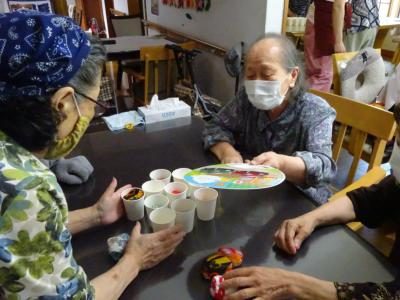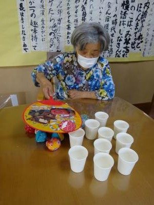 午後のレクリエーションの時間を使い、今日は団扇をフルに使っていきます