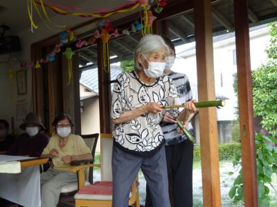 竹の水鉄砲で本日は