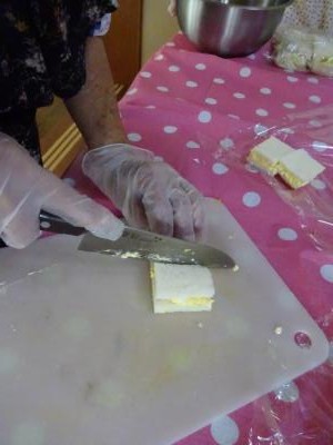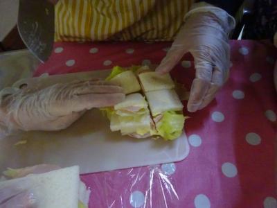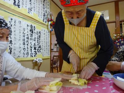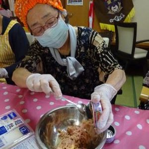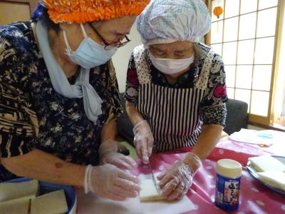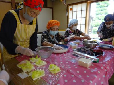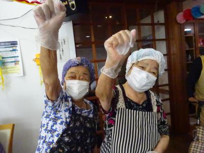手洗い、消毒を済ませ、エプロンを付けたお母様方
