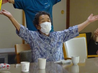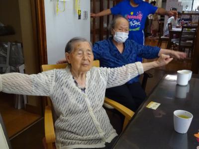 それでは、朝の体操をしましょう右斜め上右斜め上