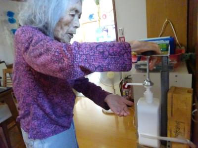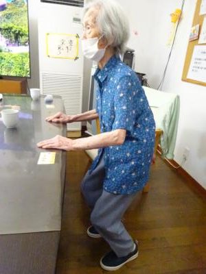 ゴムの紐を使って、脱衣・着衣の動作を鍛える