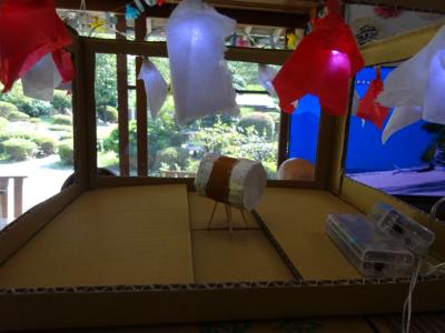 電飾に薄い紙を巻いて、明かりが少し漏れるようにすると・・・