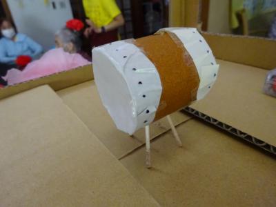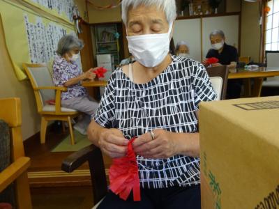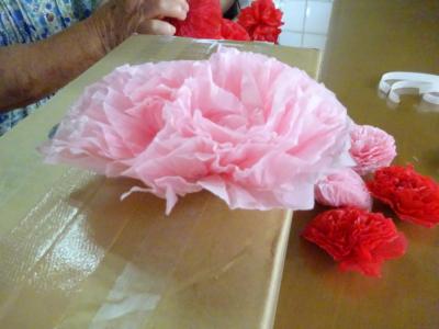 では、お次に真ん中の段ボールには、紙のお花を作って、