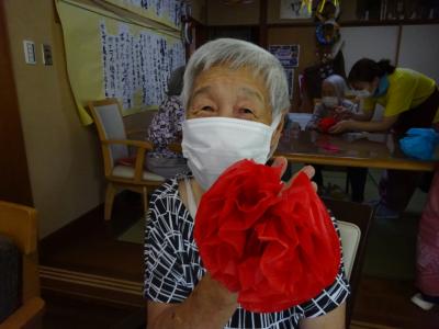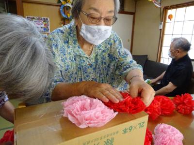 そうです、お花を皆様一つずつ作って頂いて、櫓だけでなく