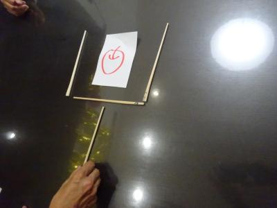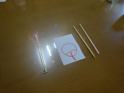 グラスに見立てた割り箸の中の「リンゴ🍎」を2本だけ動かして外に出してくださいね
