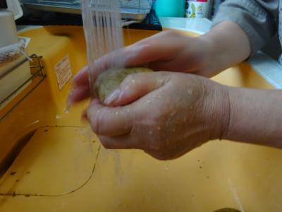 片栗粉を混ぜていくとまとまりが良くなってくるので・・・