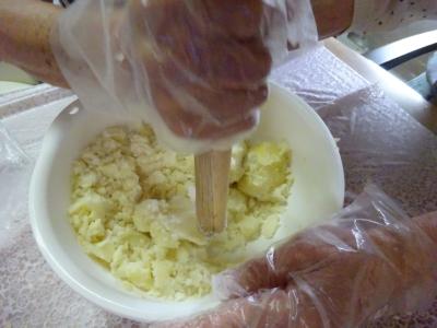 じゃがいもがむき終わりましたので、潰していきます