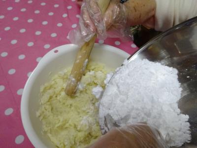 潰したじゃがいもに片栗粉を混ぜていきます