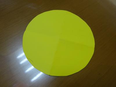 次に丸い厚紙で黄色の画用紙を模ります