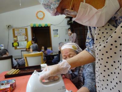 では、ハンドミキサーで混ぜていきますよーわーい (嬉しい顔)るんるん (音符)