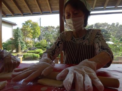 めん棒で薄くしていきます手 (グー)手 (グー)手 (グー)