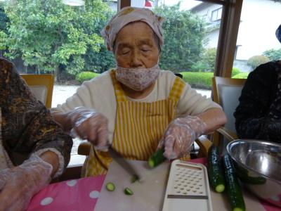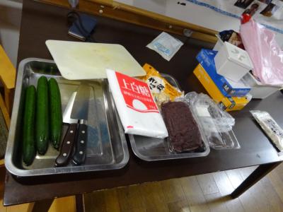 お母さんには、おはぎと言ったら相性ピッタリのきゅうりの漬物つくりをお願いしました