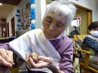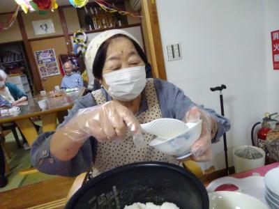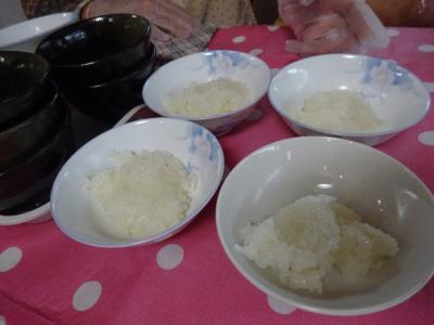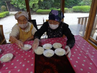 それでは、人数分にもち米を分けて頂きましょう