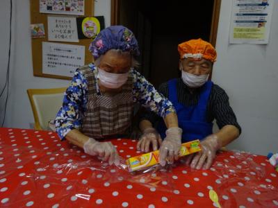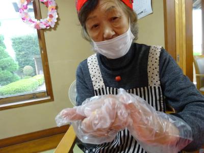 エプロンして、皆様の身支度も整いましたら始めましょうね