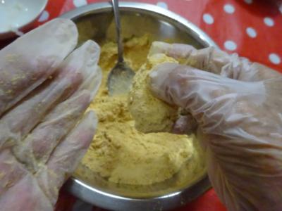 きなこの中に投入です
