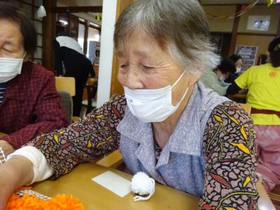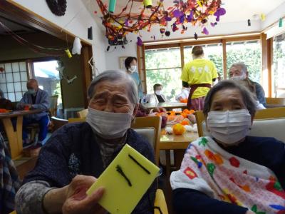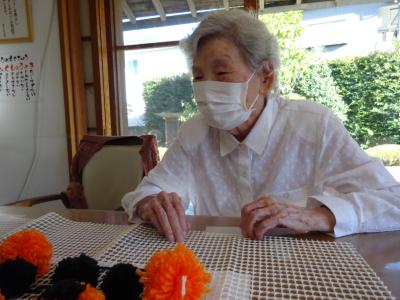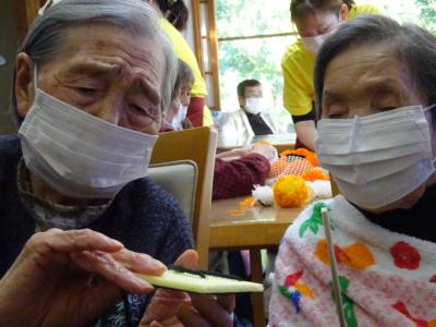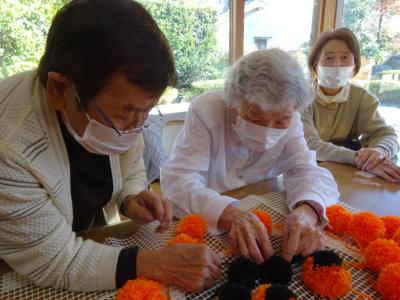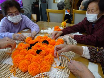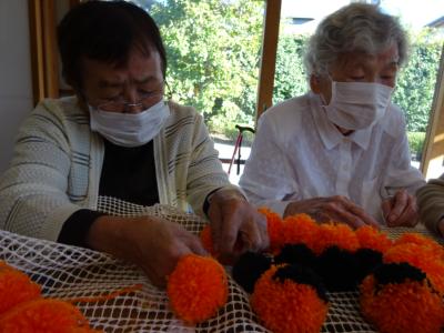 前日の今日は毛糸を使ってカボチャづくりを致しましたわーい (嬉しい顔)