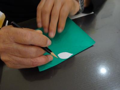 まずは、葉っぱの形をした型で沢山葉っぱを書いていきます