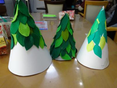 フェルトと折り紙を使って二種類の木を作ります(∩´∀`)∩
