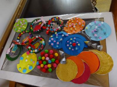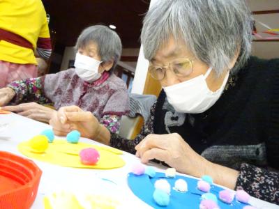 色やポンポンの大きさなどを工夫され、真剣に黙々と作って下さる今日のお父様お母様・・・