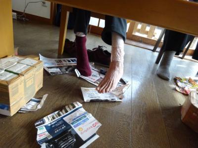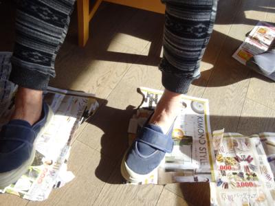 今日は、足で新聞紙やチラシを畳んだり破ったり、捨てるところまでを行っていました👣