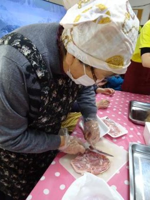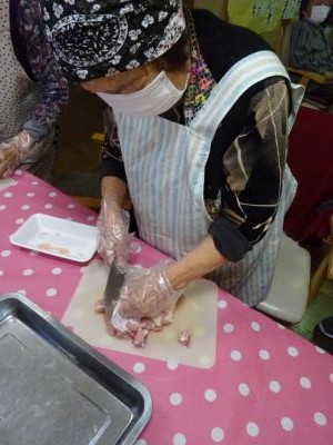 まずは、鶏肉とベーコンのカットから