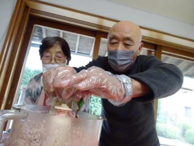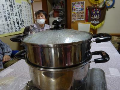 一人二本くらい作って頂き、蒸し器に入れていきます