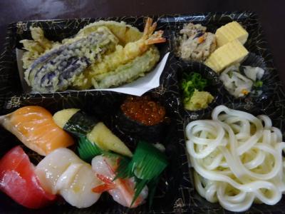 うどんと天ぷら、お寿司の皆様が大好きなトリプル弁当です(´艸`*)