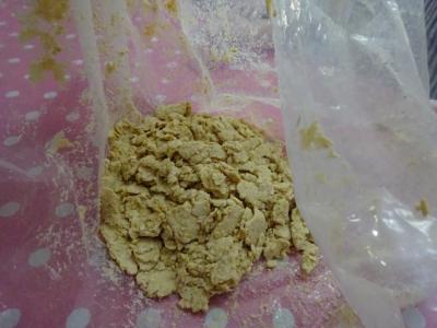 煮た大豆を潰していきましょう