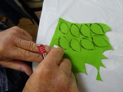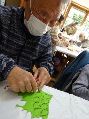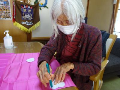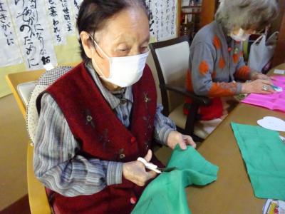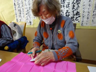 こちらでは・・型取りした布を切っていただきますね