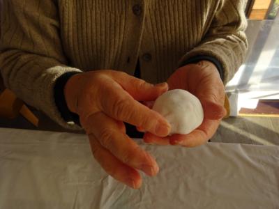 先程の粘土に先ほど切っていた布を巻き付けるように貼りますので・・・