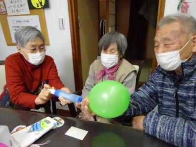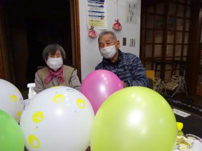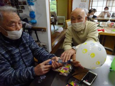 出来上がった風船に囲まれて、笑顔のお父様とお母様です