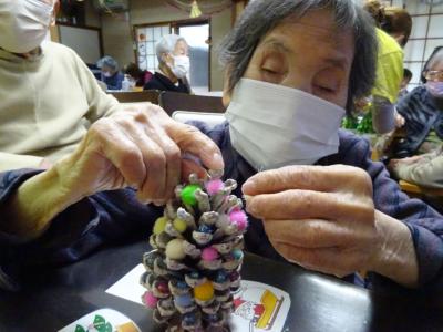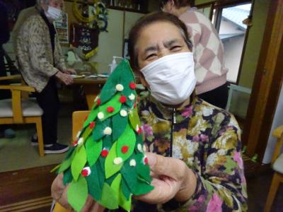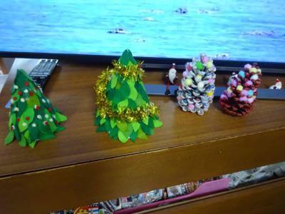 小さな電飾を模したフェルトを付けて、華やかなツリーが一つ完成し・・・