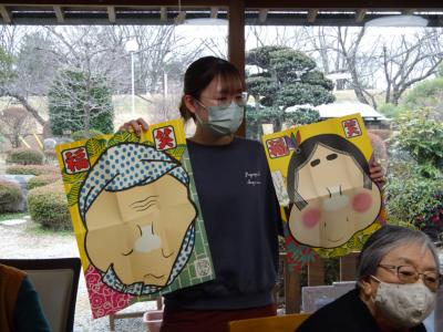 そして、お次に昔懐かしい本物の福笑いを行いました