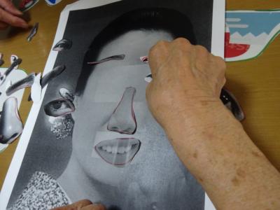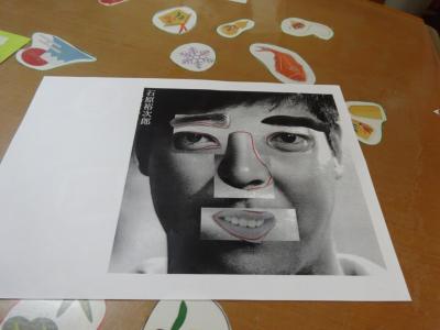 福笑いを行うために、まず、五人の方の眉毛、目、鼻、口を