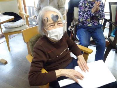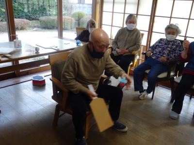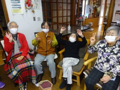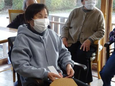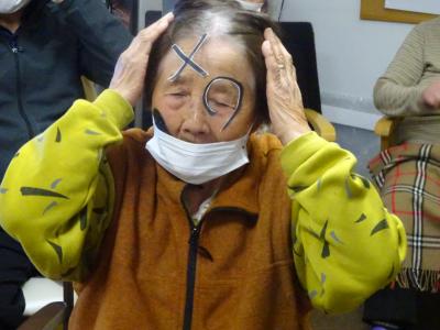 本日御来庵の皆様に〇✖マークが貼られて大騒ぎの「羽根突き」になり
