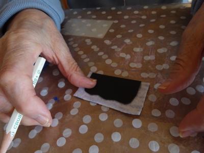 これも型取りをして、切って先程のフェルトにボンドで貼っていきます