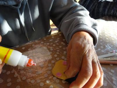 こちらも型紙にそって切っていき、ボンドでくっつけていきます