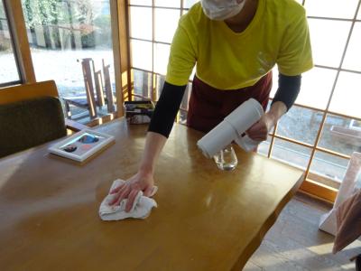 私たちスタッフは、テーブルや手すりなど皆様の触れる部分の