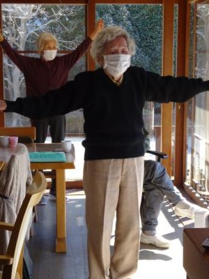今日も望みの幸望庵では賑やかな声と共に、一生懸命に生活動作を維持するため、体操に励んでいる姿が見られました