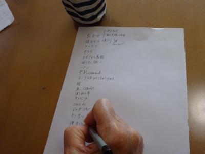 最初に、「スーパーやコンビニエンスストア]で売っている物を思い出して沢山書き出して頂きました
