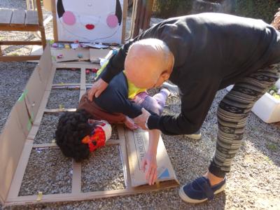 お父様におぶさり、鬼も望みの幸望庵の一員にしてもらったようです(^ー^* )フフ♪