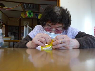 細かい作業なのですが、カラオケから流れる春の曲を口ずさみながら、一生懸命に開いて下さいます🌺