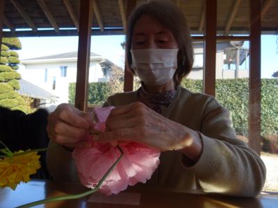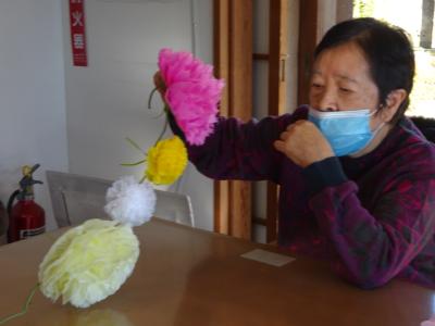 今回は、春らしい色のお花紙を使い、沢山の花を開いて頂くところから始まります
