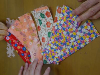 次に色々なちりめんの模様の中から好きな着物を選んで頂きます