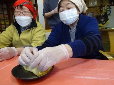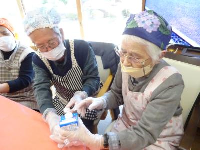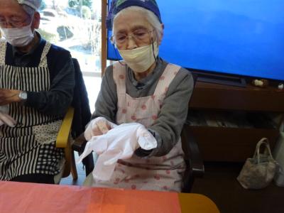 食材を扱うため、ゴム手袋もして、コロナ対策に