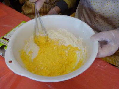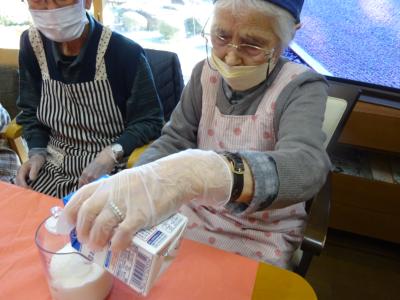 そして、分量をしっかりと量り入れ、混ぜていきます