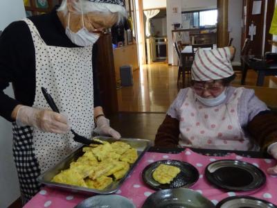 おやつの「お好み焼き」を作って下さる方々の調理の準備がはじまりました