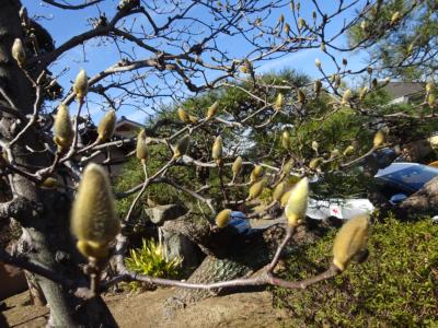 望みの幸望庵の庭に咲く、ハクレンも蕾がかなり膨らんできました