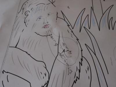 こちらの動物の顔がないので皆様に顔を描いて頂いて何を言っているのか、考えていただきます